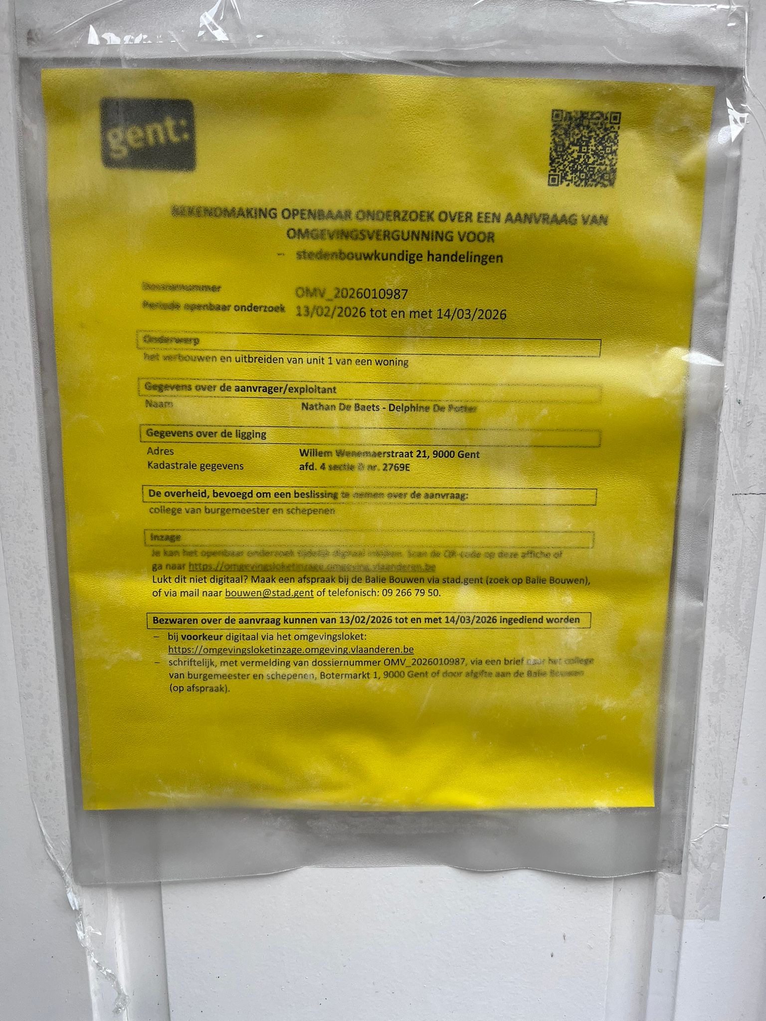 Je kan een bezwaarschrift digitaal indienen via Omgevingsloketof door afgifte aan de Balie Bouwen (op afspraak). Het kan ook per brief, gericht aan het college van burgemeester en schepenen, Botermarkt 1, 9000 Gent. Dit kan ook via een aangetekende zending naar het college van burgemeester en schepenen, Botermarkt 1, 9000 Gent. Motiveer je bezwaarschrift en vermeld duidelijk op het bezwaarschrift het OMV-nummer.