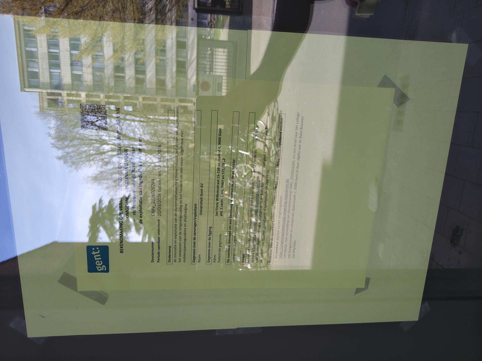 Je kan een bezwaarschrift digitaal indienen via Omgevingsloketof door afgifte aan de Balie Bouwen (op afspraak). Het kan ook per brief, gericht aan het college van burgemeester en schepenen, Botermarkt 1, 9000 Gent. Dit kan ook via een aangetekende zending naar het college van burgemeester en schepenen, Botermarkt 1, 9000 Gent. Motiveer je bezwaarschrift en vermeld duidelijk op het bezwaarschrift het OMV-nummer.