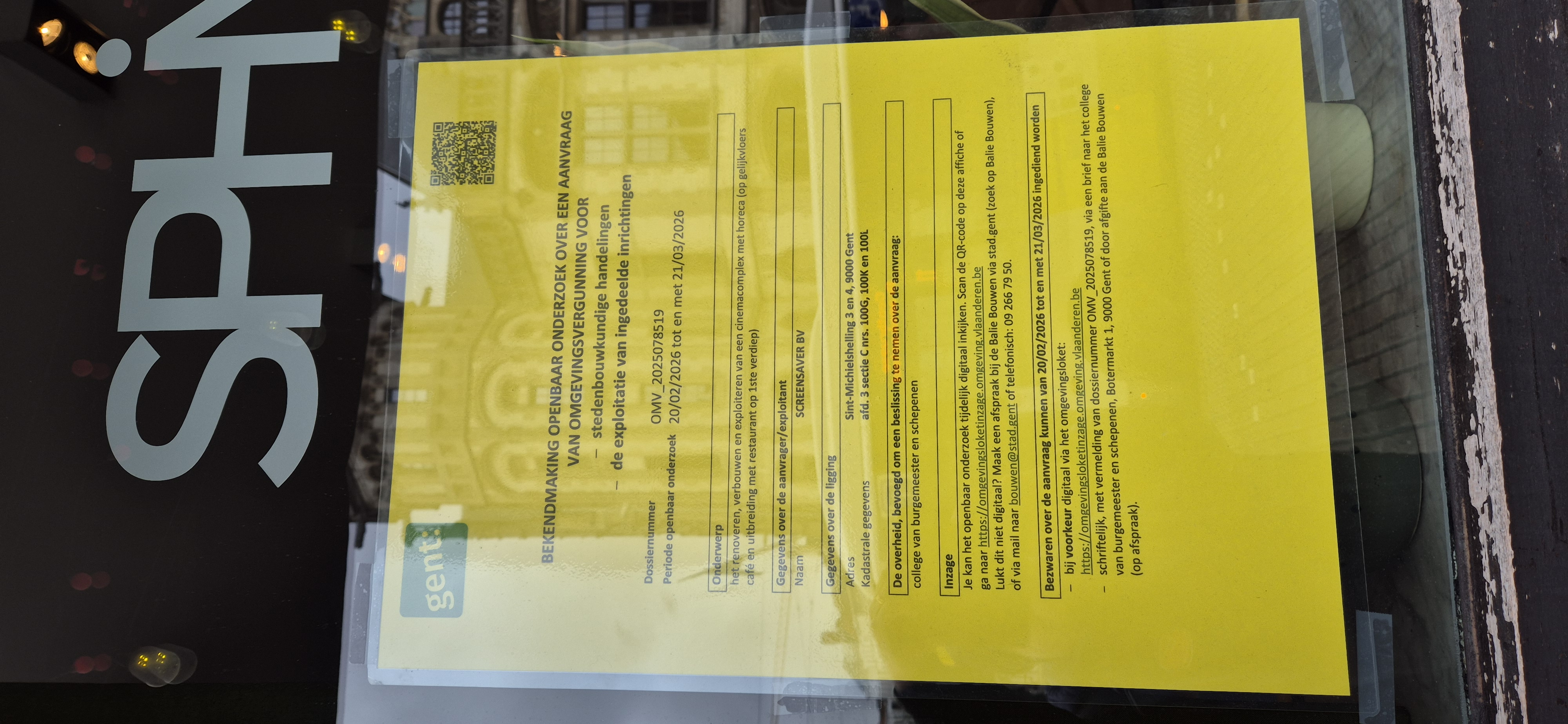 Onderwerp: Het renoveren, verbouwen en exploiteren van een cinemacomplex met horeca (op gelijkvloers café en uitbreiding met restaurant op 1ste verdiep)