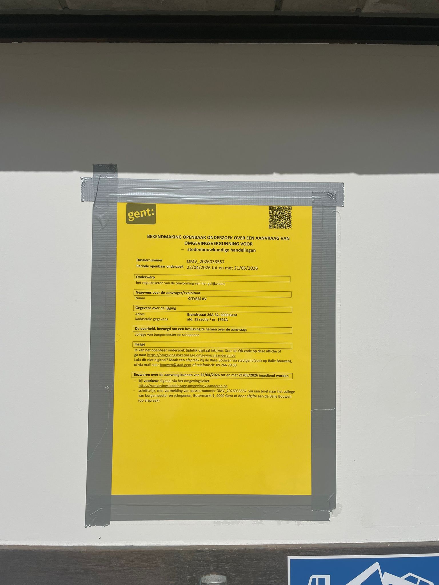 Je kan een bezwaarschrift digitaal indienen via Omgevingsloketof door afgifte aan de Balie Bouwen (op afspraak). Het kan ook per brief, gericht aan het college van burgemeester en schepenen, Botermarkt 1, 9000 Gent. Dit kan ook via een aangetekende zending naar het college van burgemeester en schepenen, Botermarkt 1, 9000 Gent. Motiveer je bezwaarschrift en vermeld duidelijk op het bezwaarschrift het OMV-nummer.